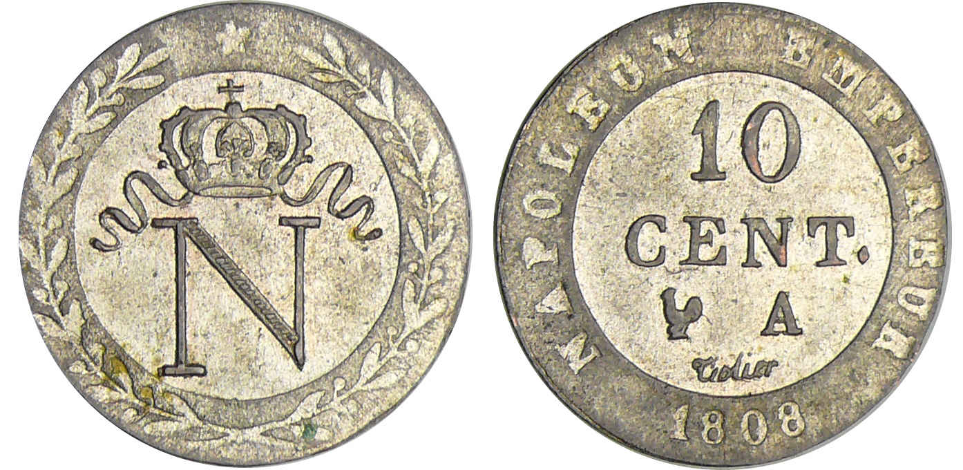 Napoléon 1er (1804-1814) – 10 centimes Napoléon Ier – 1808 A (Paris) faux d’époque