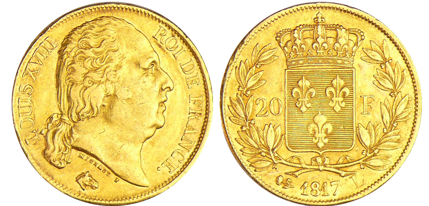 Louis XVIII (1815-1824) – 20 francs au buste nu 1817 L (Bayonne)