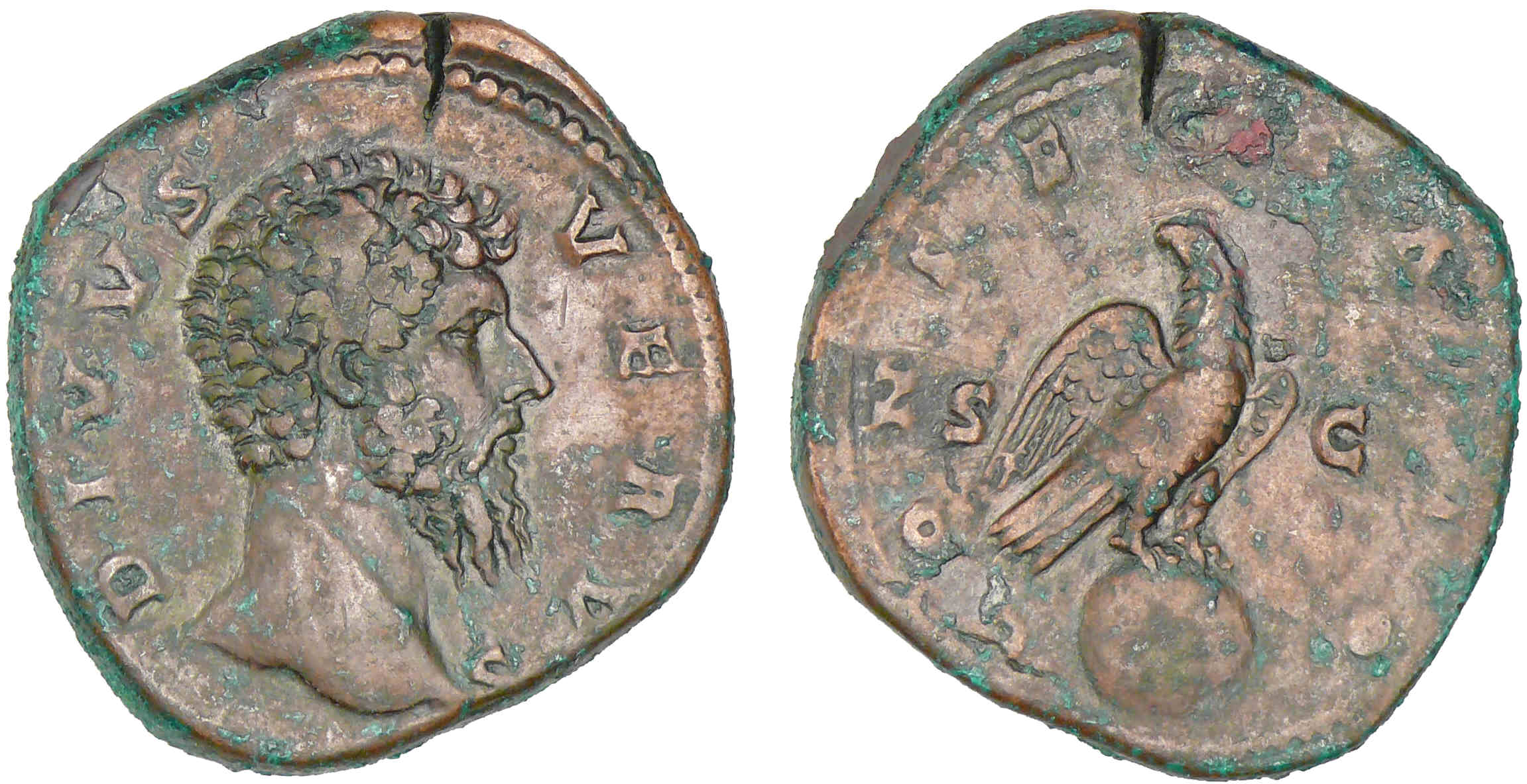 Revers : R/ CONSECRATIO. Aigle regardant à gauche, debout sur un globe.