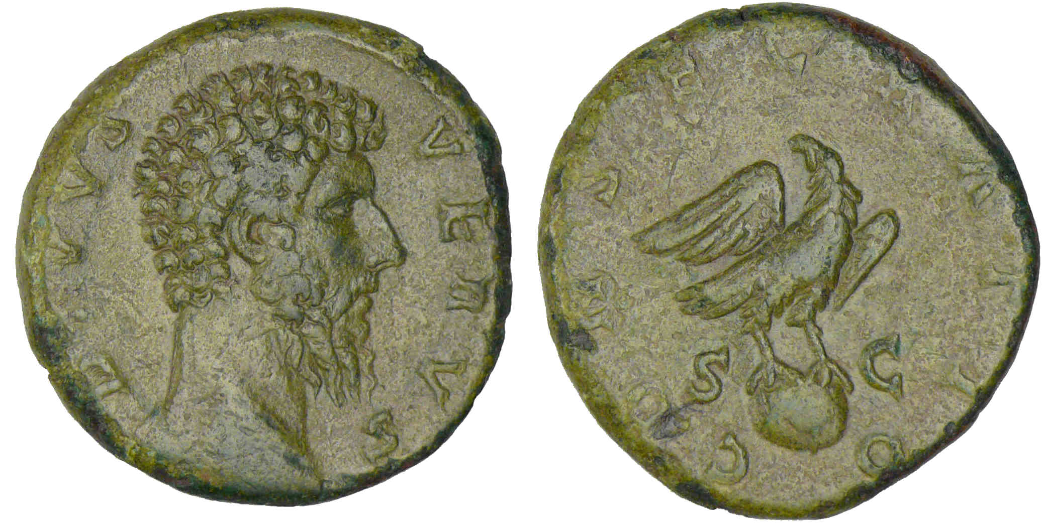 R/ CONSECRATIO. Aigle regardant à gauche, debout sur un globe.