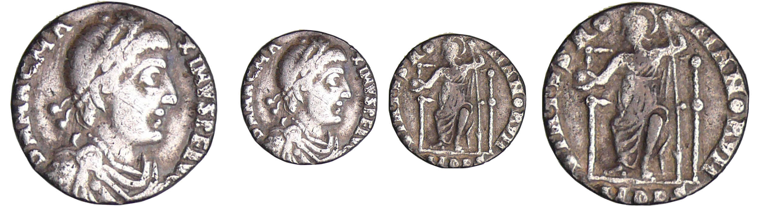 D’un poids observé de 0.67gr, et compte tenu de son rognage, faible et bien symétrique, elle a du peser à l’émission entre 0.80 et 0.90 gr. Ce sera d’ailleurs le standard d’émission des rares demi-siliques, au revers de la Victoire, émises après sa mort entre 388 et 393 par les ateliers d’Italie, Milan et Aquilée (RIC 57) au nom d’Arcadius, de Valentinien II et de Théodose I.