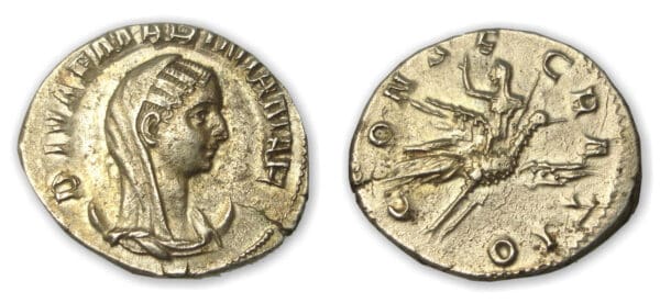 Revers : R/ CONSECRATIO Paon volant à droite enlevant Marianne au ciel.