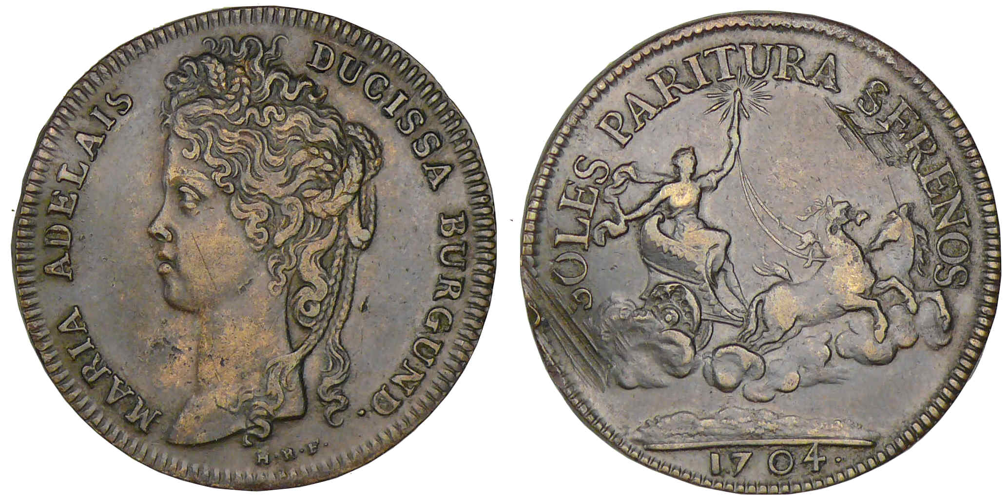 Marie-Adélaïde de Savoie, femme de Louis duc de Bourgone, mère de Louis XV – Jeton – 1704