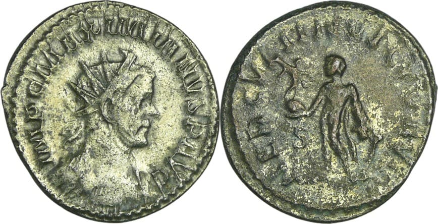 Avers : A/ IMP C MAXIMIANVS P AVG Buste radié, drapé et cuirassé à droite.