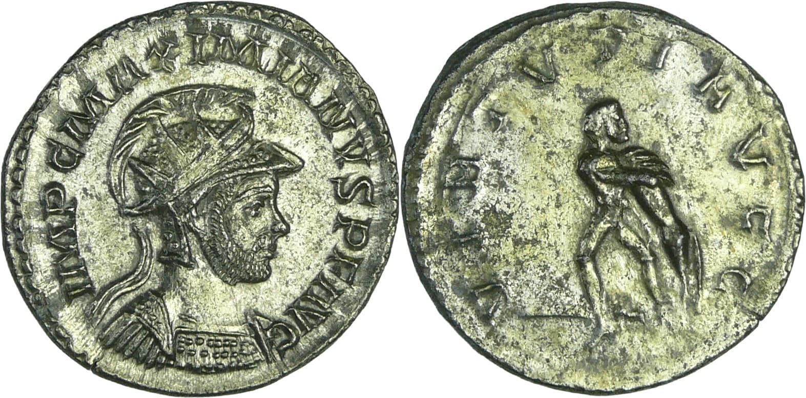 A/ IMP C MAXIMIANVS P F AVG Buste radié et cuirassé à droite.