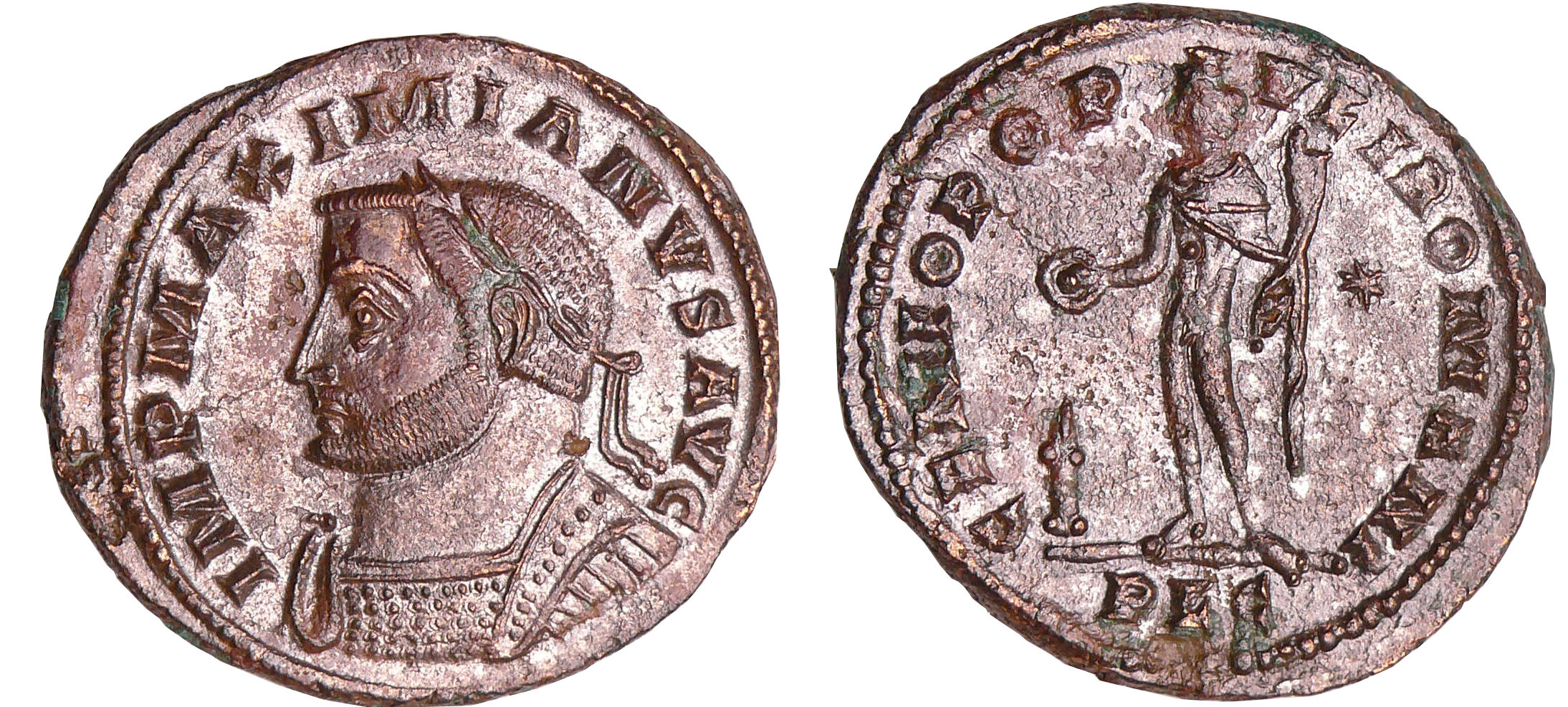A/ IMP MAXIMIANVS AVG Buste lauré et cuirassé à gauche.