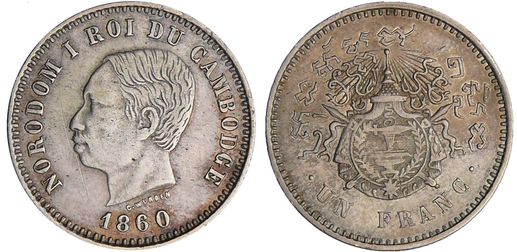 / Cambodge – Norodom I (1860-1904) – 1 franc 1860