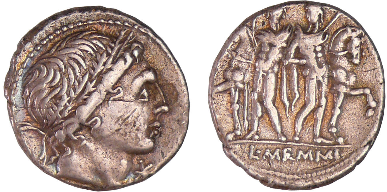 R/ L MEMMI Les Dioscures entre deux chevaux.
