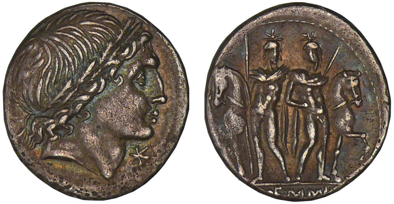 R/ L MEMMI. Les Dioscures entre deux chevaux.