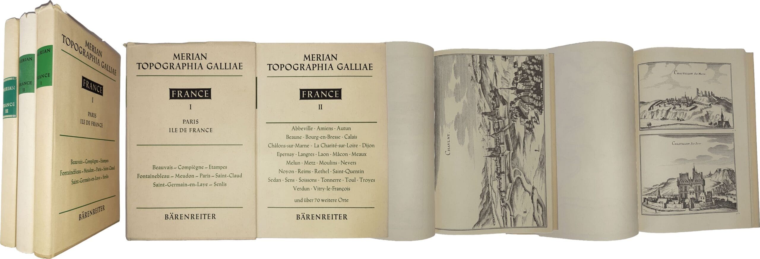 Merian – France – Martinum Zeillerum – Topographia galliae – 1655 – Neue ausgabe 1970 ohne die texte von Martin Zeiler – Bands I, II and III – Nouvelle édition de 1970 sans les textes de Martin Zeiler