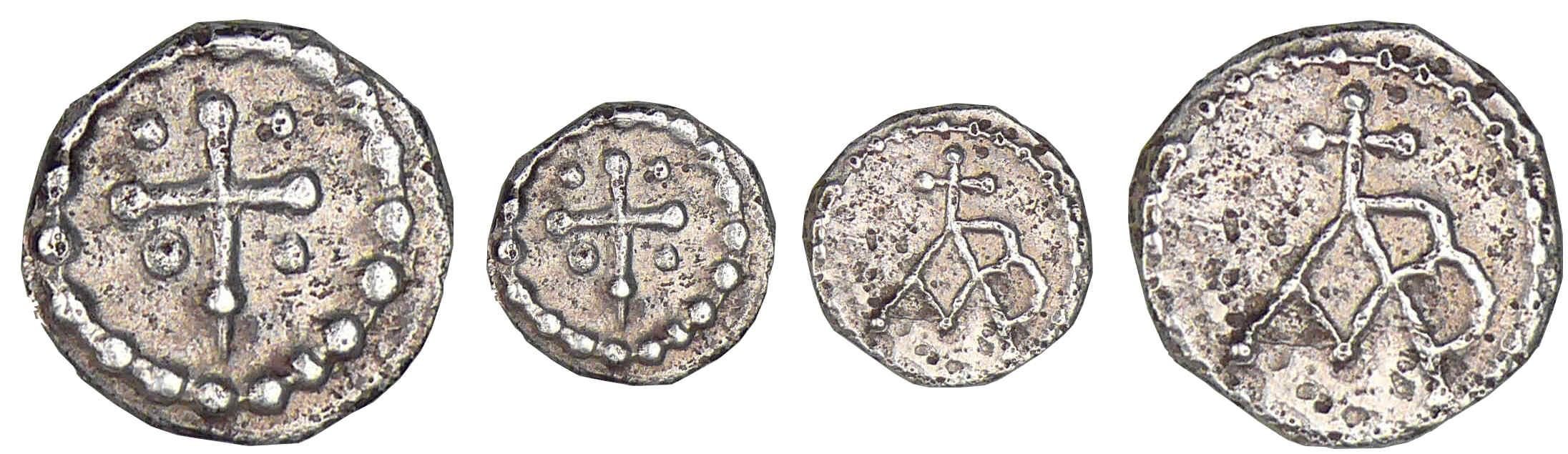 R/ Croix fichée cantonnée de quatre globules.