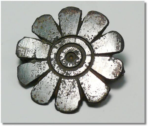 Fibule en bronze argenté représentant une fleur – 33 mm.