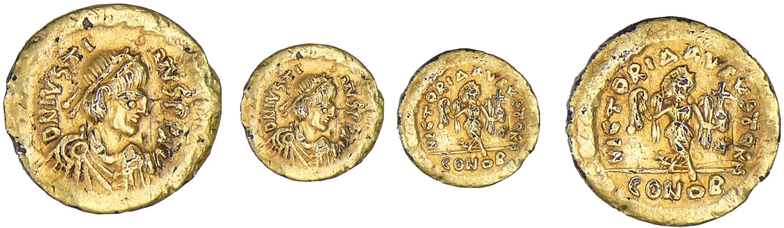 R/ VICTORIA AVGVSTORVM // CONOB. La Victoire tenant une couronne et un globe surmonté d’une croix.