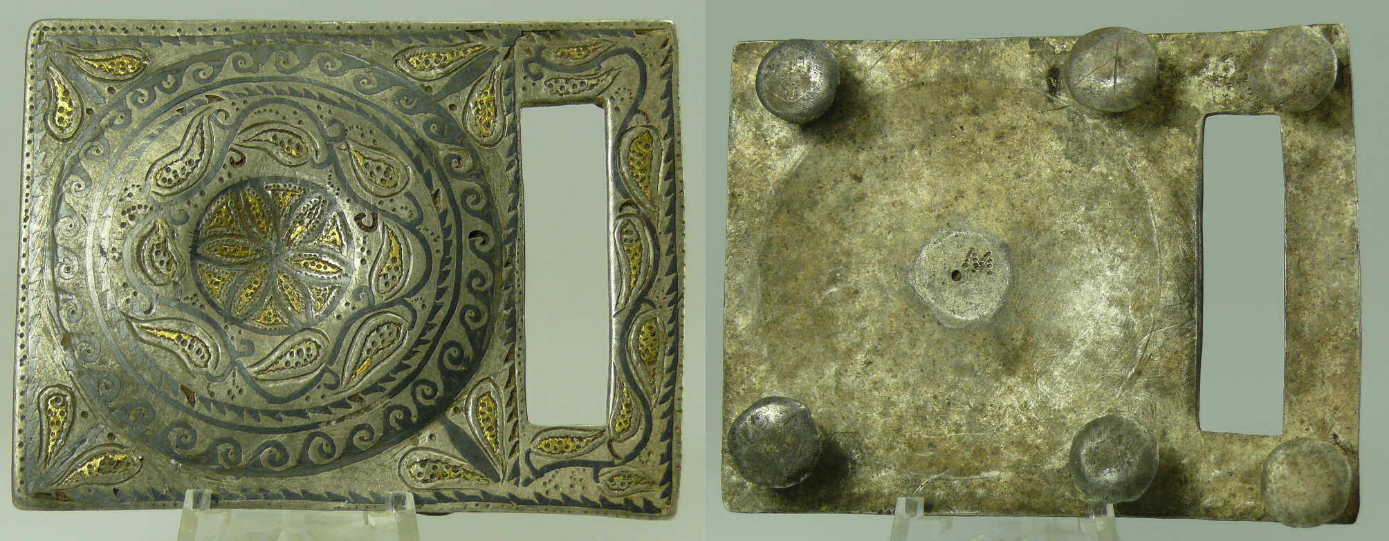 Mérovingien – Plaque-boucle en argent doré et niellé – 7ème-9ème siècle