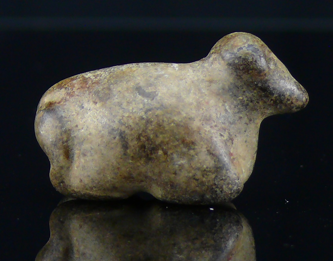 Belle représentation en pierre de couleur verdâtre d’un mouton couché. 35*16 mm