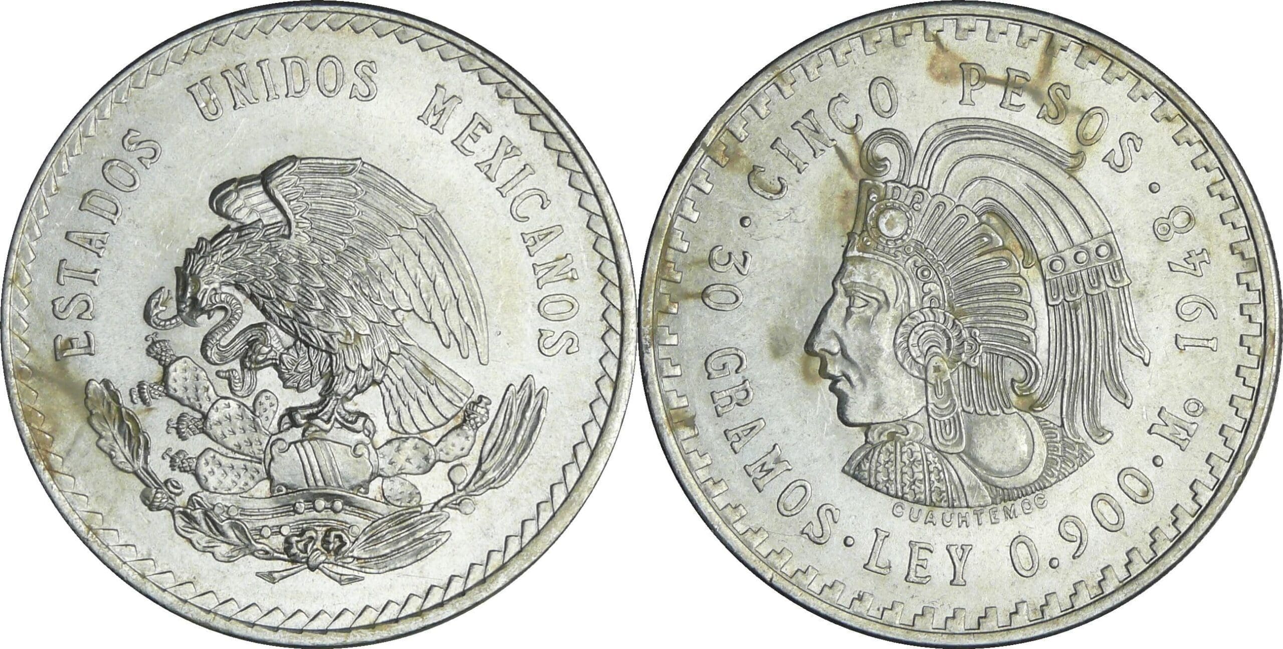 / Mexique – Seconde République (1864-) – 5 pesos 1948 (Mexico)
