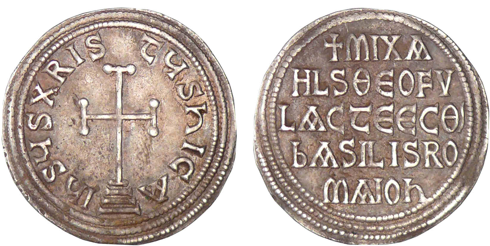 Revers : R/ + mIXA HL S ΘЄOFV LACTЄ ЄC Θ en cinq lignes.