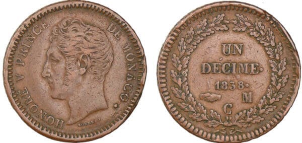 A/ HONORE V PRINCE DE MONACO. Tête nue à gauche.