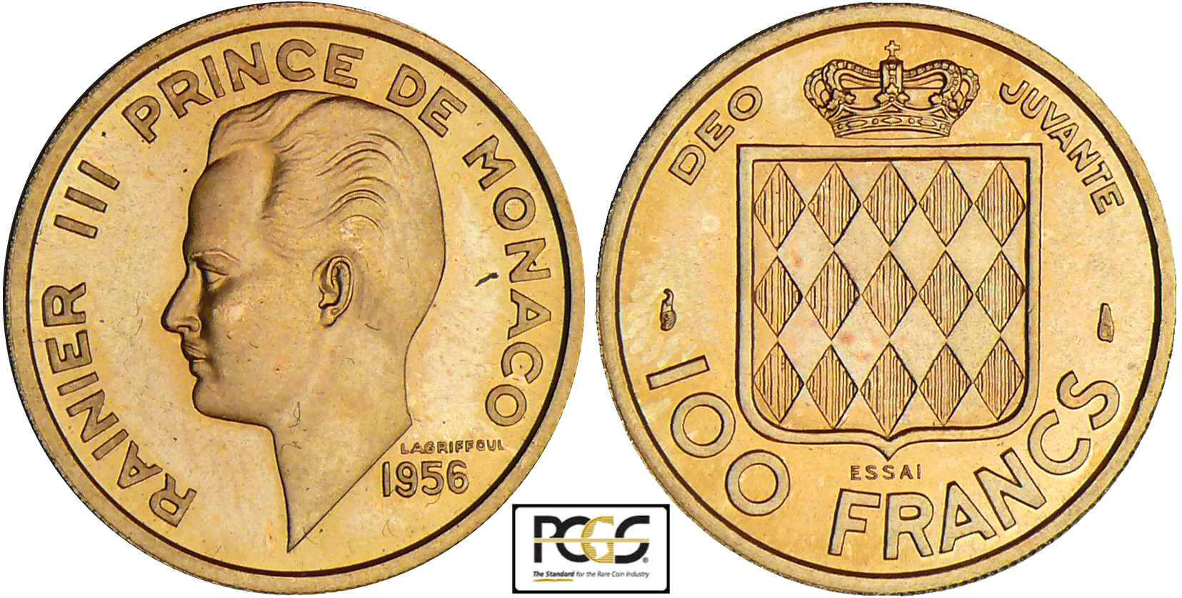 / Monaco – Rainier III – 100 francs 1956 – Essai en or
