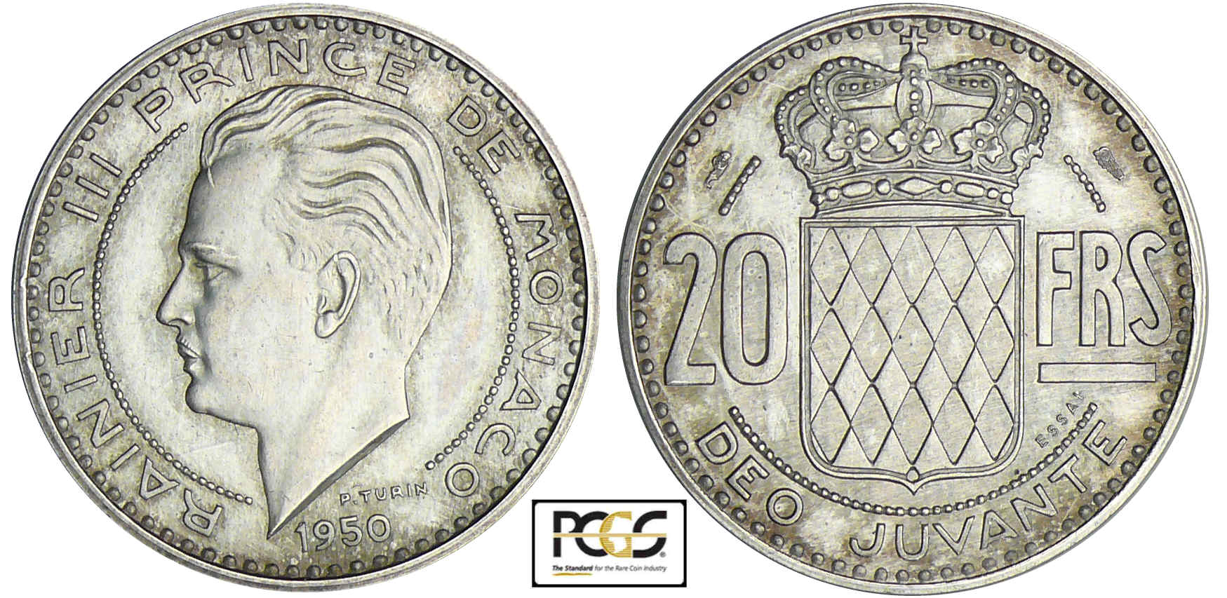 Monaco – Rainier III – 20 francs 1950 – Piéfort en argent