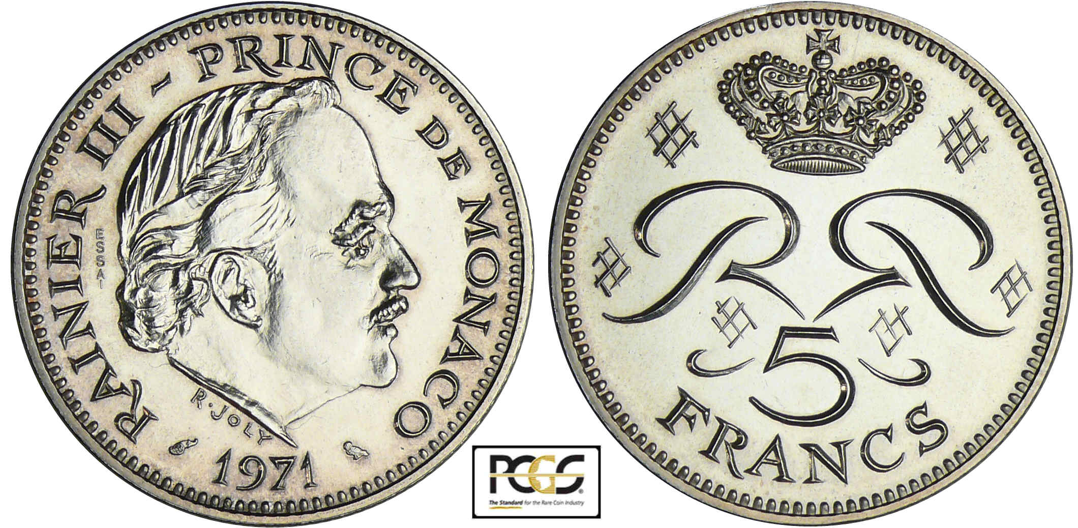 / Monaco – Rainier III – 5 francs 1971 – Essai en argent