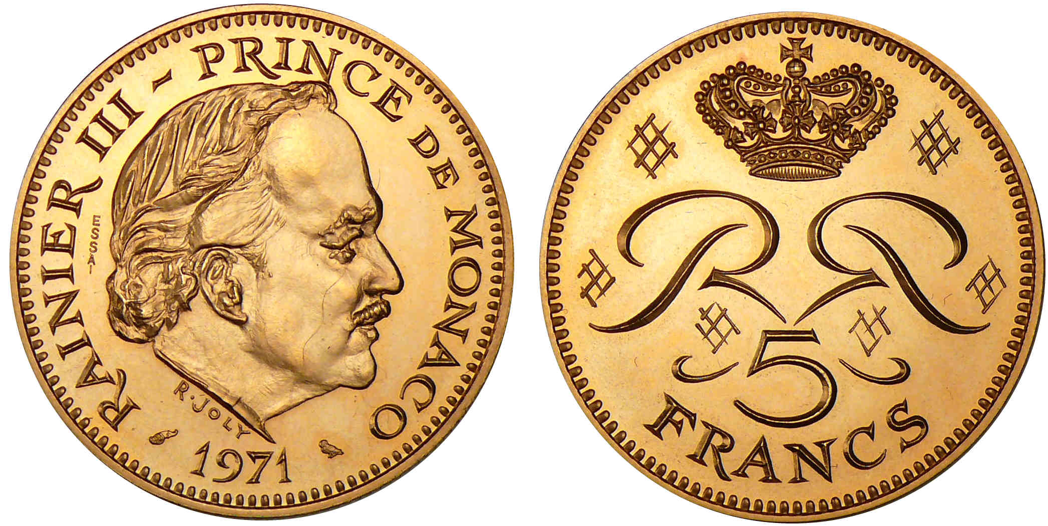 / Monaco – Rainier III – 5 francs 1971 – Essai en or