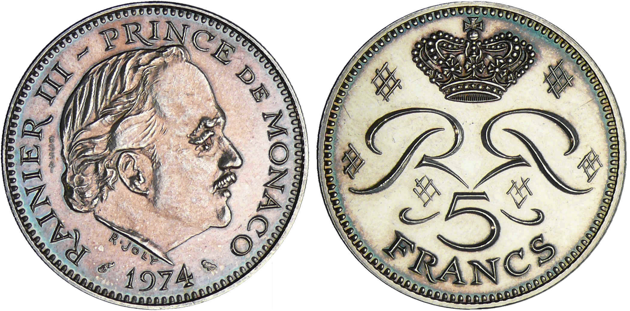 / Monaco – Rainier III – 5 francs 1974 – Essai en argent