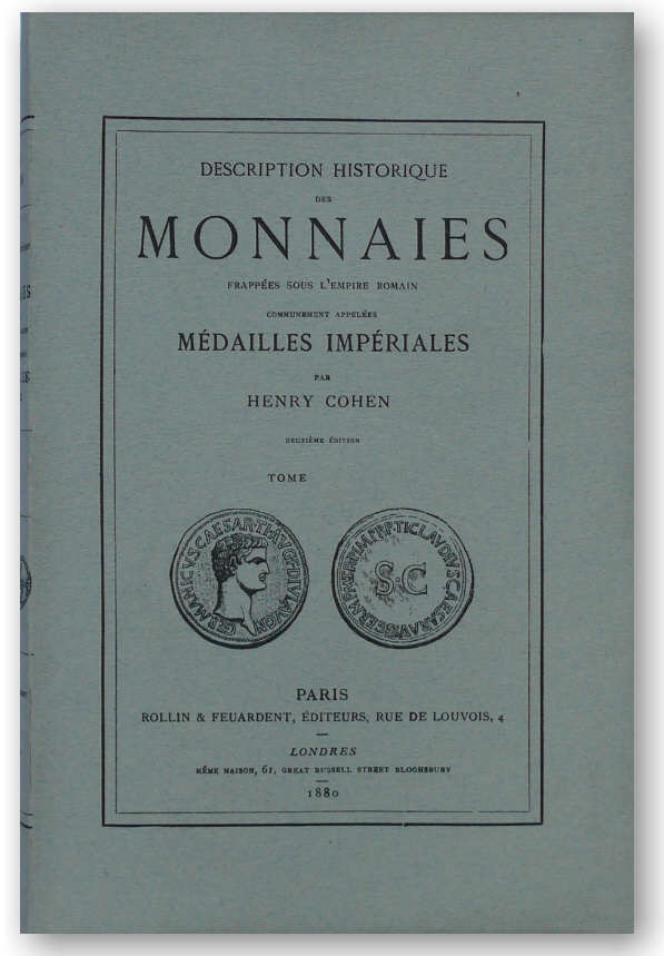 Paris 1880 – Tome 5. Description historique des monnaies frappées sous l’empire romain par Henry Cohen. 546 pages. De Gordien III à Valérien le Jeune.