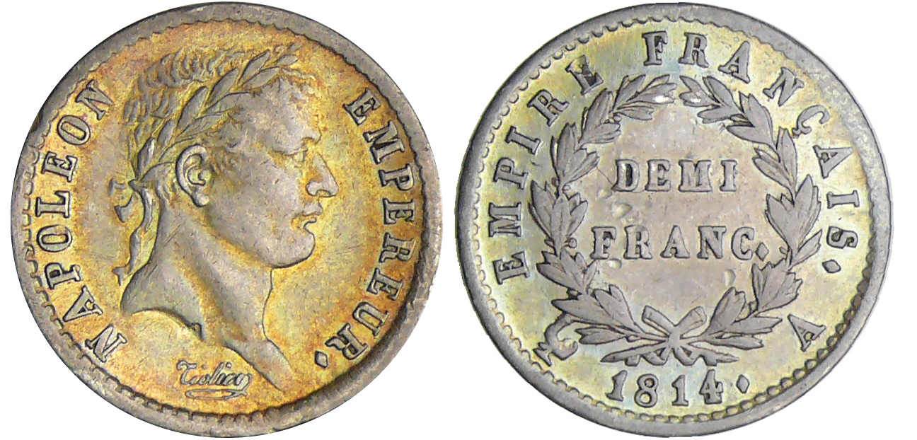 Napoléon 1er (1804-1814) – 1/2 franc revers empire 1814 A (Paris)