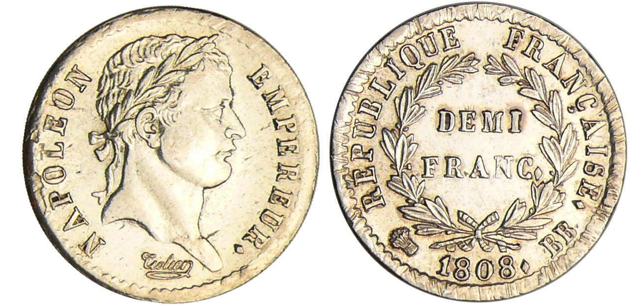 / Napoléon 1er (1804-1814) – 1/2 franc revers république 1808 BB (Strasbourg)