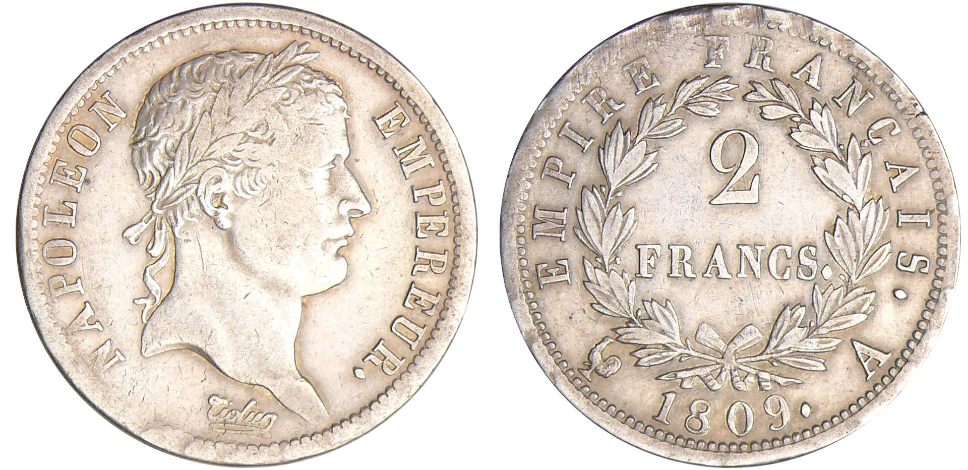 Napoléon 1er (1804-1814) – 2 francs revers empire 1809 A (Paris)