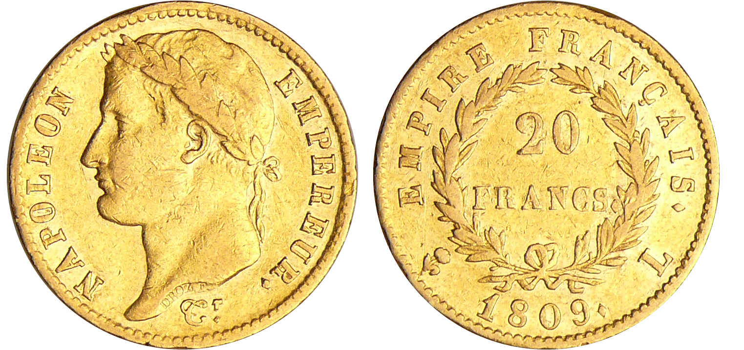 Napoléon 1er (1804-1814) – 20 francs revers empire 1809 L (Bayonne)