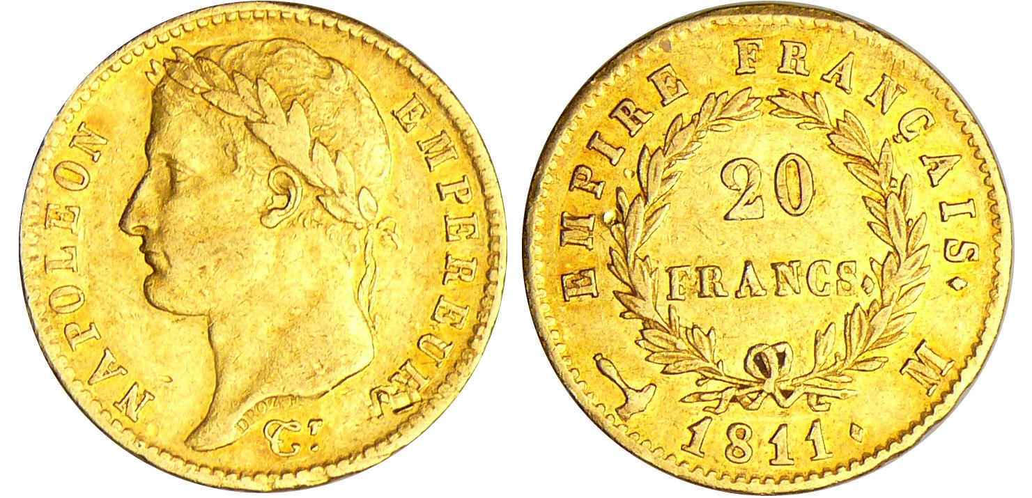 Napoléon 1er (1804-1814) – 20 francs revers empire 1811 M (Toulouse)
