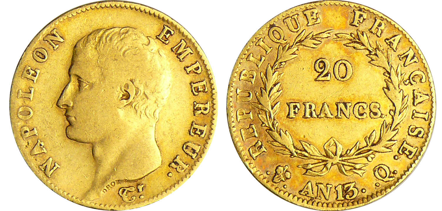Napoléon 1er (1804-1814) – 20 francs tête nue An 13 Q (Perpignan)