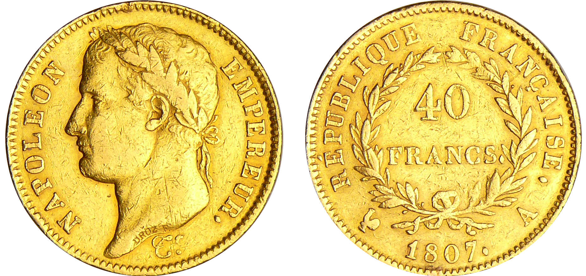 Napoléon 1er (1804-1814) – 40 francs revers république 1807 A (Paris)
