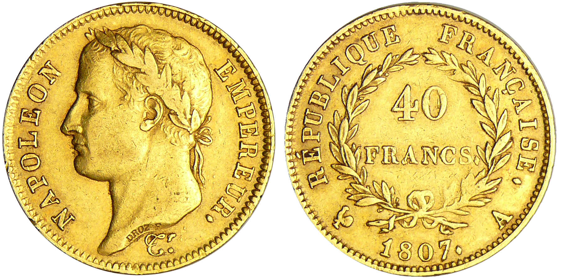 Napoléon 1er (1804-1814) – 40 francs revers république 1807 A (Paris)