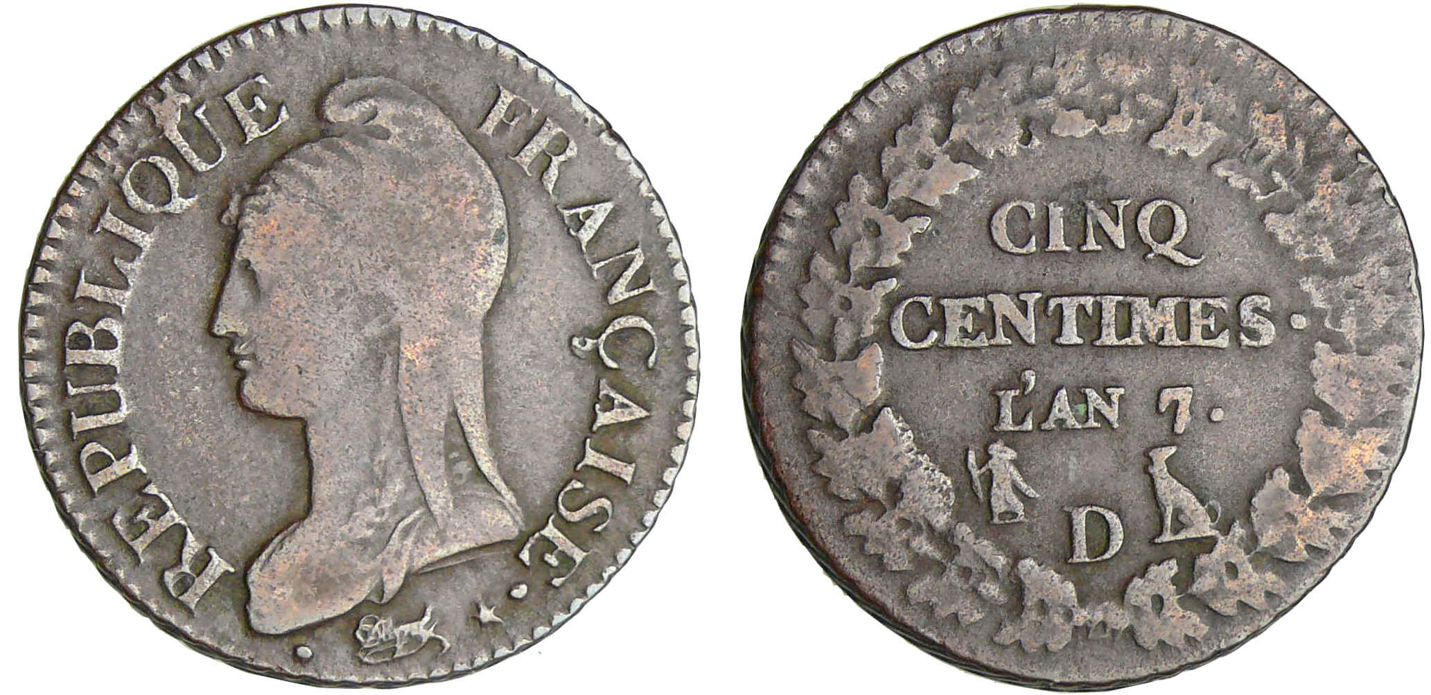 Directoire (1795-1799) – 5 centimes Dupré – grand module – An 7/5 D (Lyon)