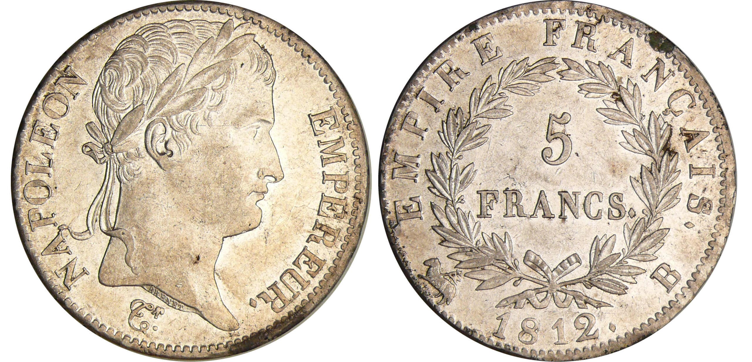 Napoléon 1er (1804-1814) – 5 francs revers empire 1812 B (Rouen)