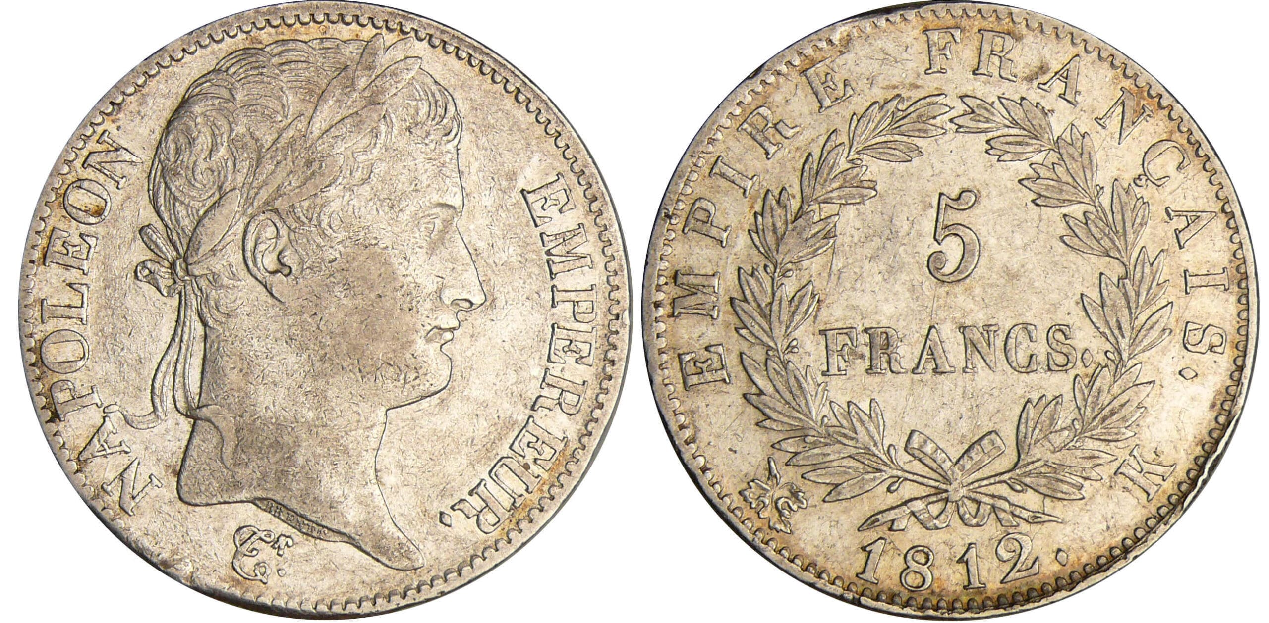 Napoléon 1er (1804-1814) – 5 francs revers empire 1812 K (Bordeaux)