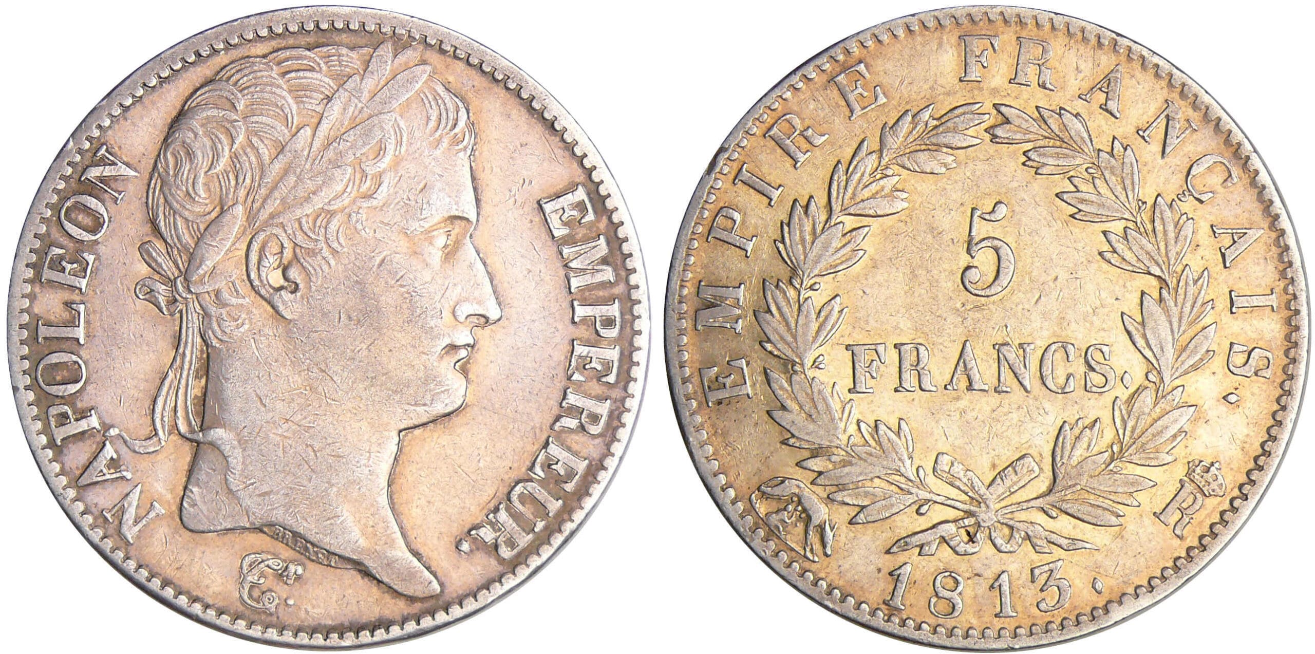 Napoléon 1er (1804-1814) – 5 francs revers empire 1813 R (Rome)