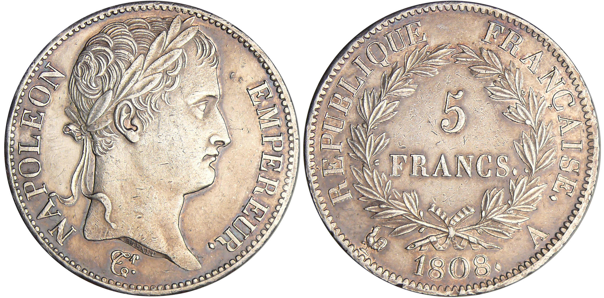 Napoléon 1er (1804-1814) – 5 francs revers république 1808 A (Paris)