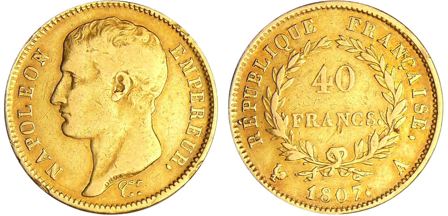 Napoléon 1er (1804-1814) – type transitoire – 40 francs tête nue 1807 A (Paris)