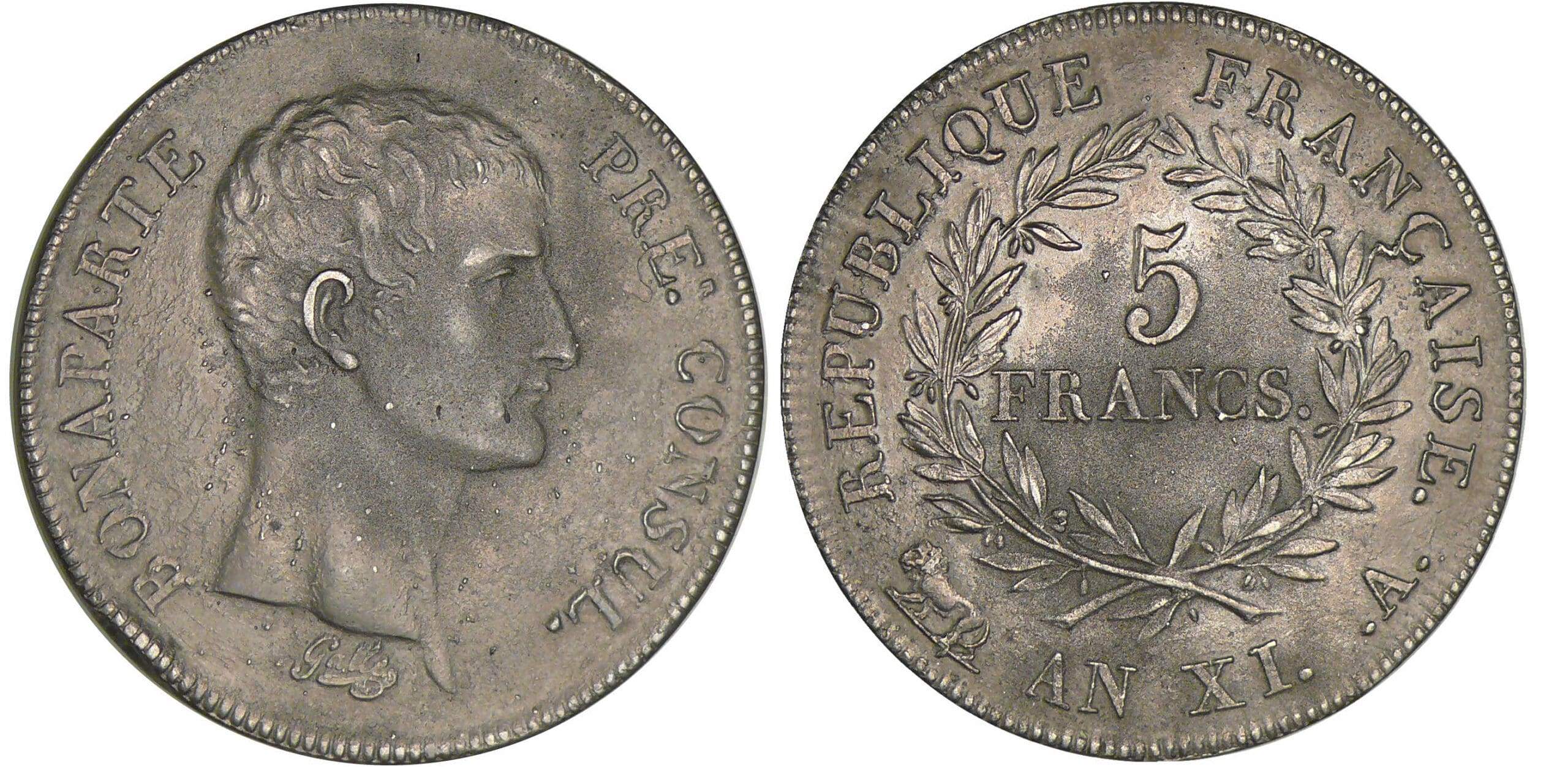 Napoléon Ier – Essai de la 5 francs AN XI – Concours de Galle