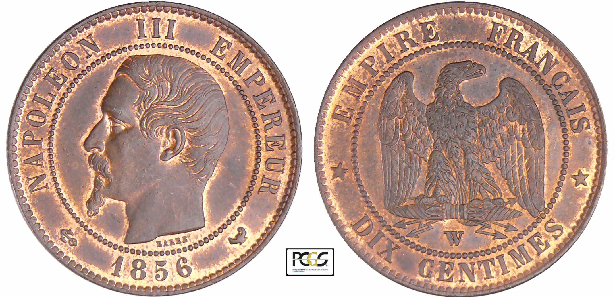 Napoléon III (1852-1870) – 10 centimes tête nue 1856 W (Lille)