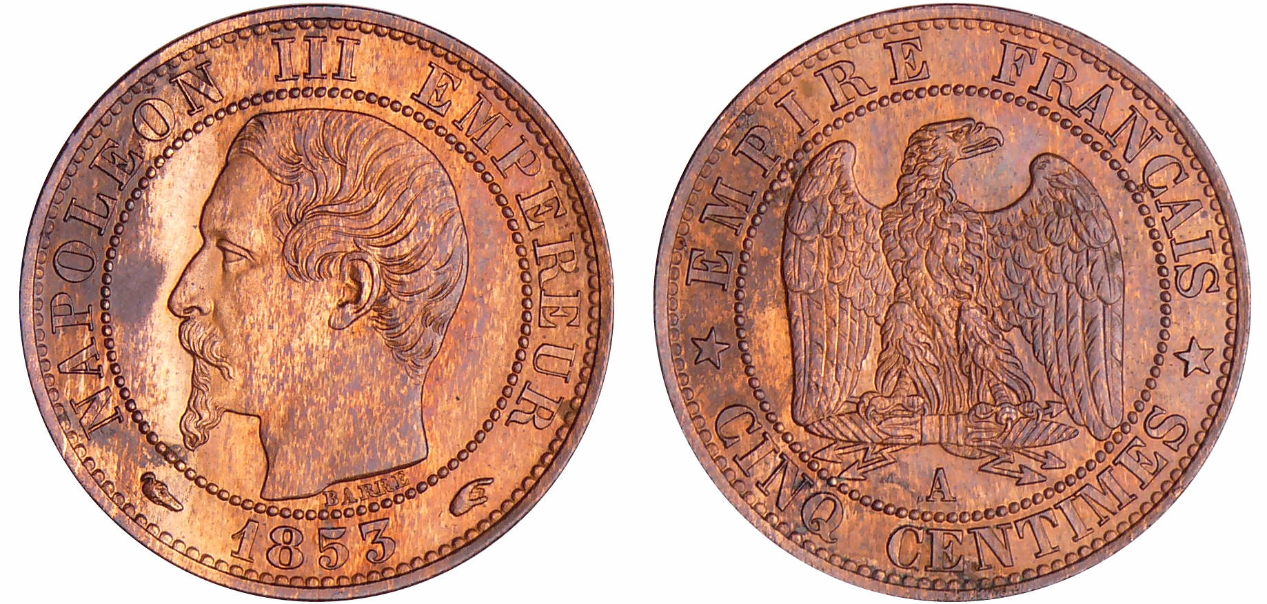 Napoléon III (1852-1870) – 5 centimes tête nue 1853 A (Paris)