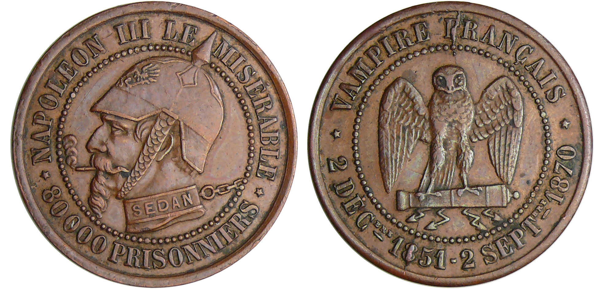 / Napoléon III (1852-1870) – Médaille satirique au module de la 5 centimes « Napoléon le misérable »