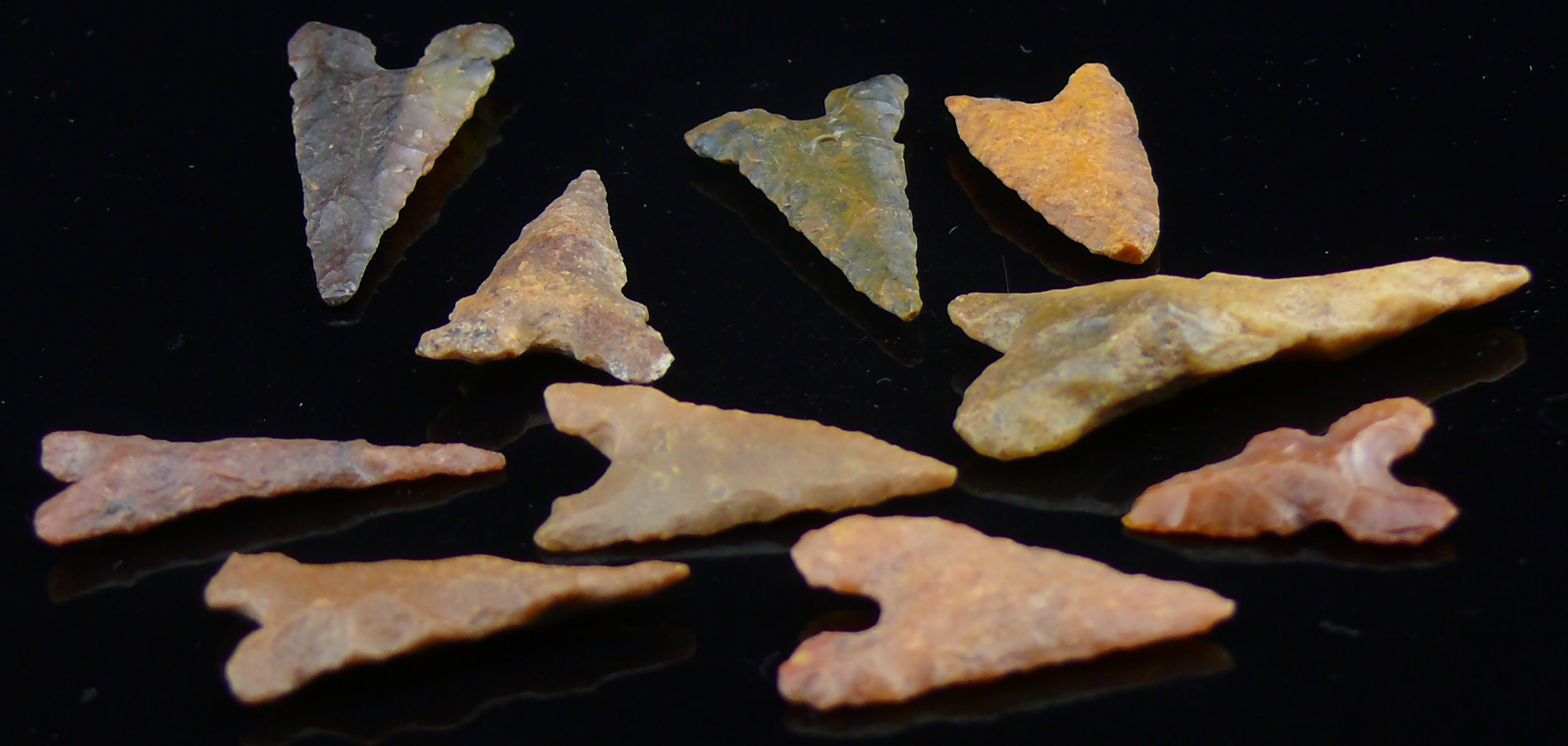 Avers : Lot de 10 pointes de flèche en silex provenant du sud Maroc. De 25 à 45 mm.