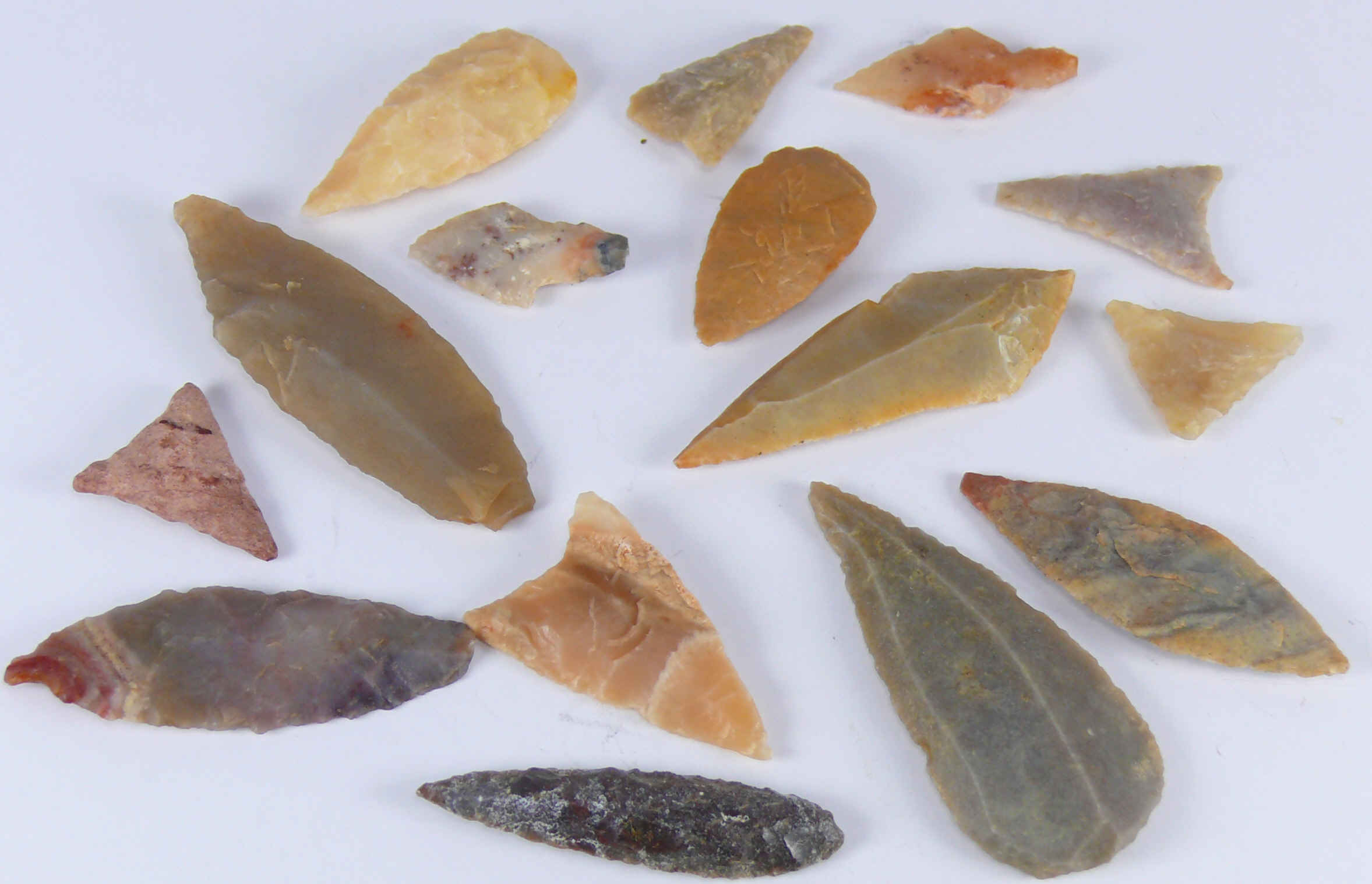 Avers : Lot de 15 pointes de flèche en silex provenant du sud Maroc. De 20 à 45 mm.