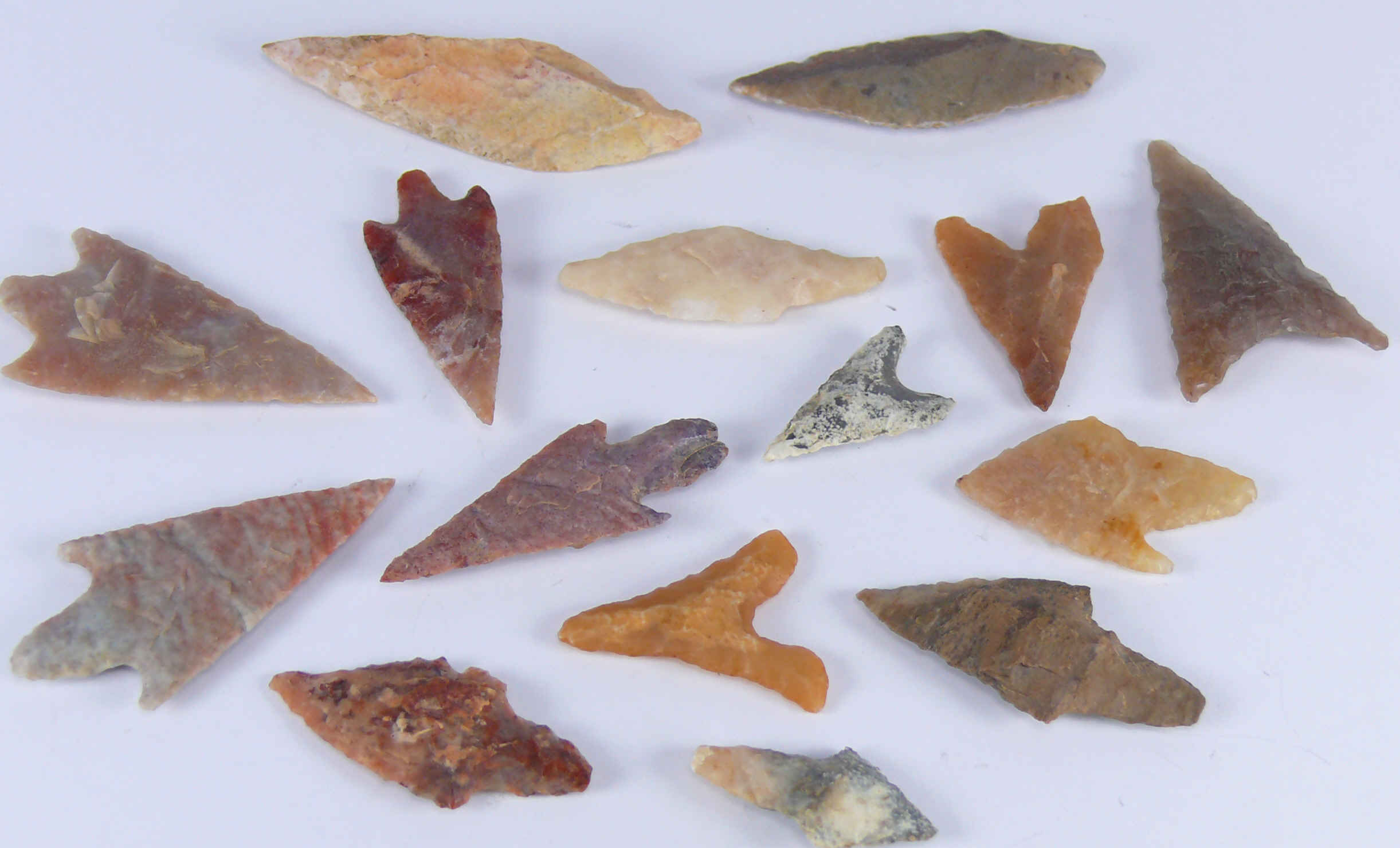 Lot de 15 pointes de flèche en silex provenant du sud Maroc. De 20 à 45 mm.