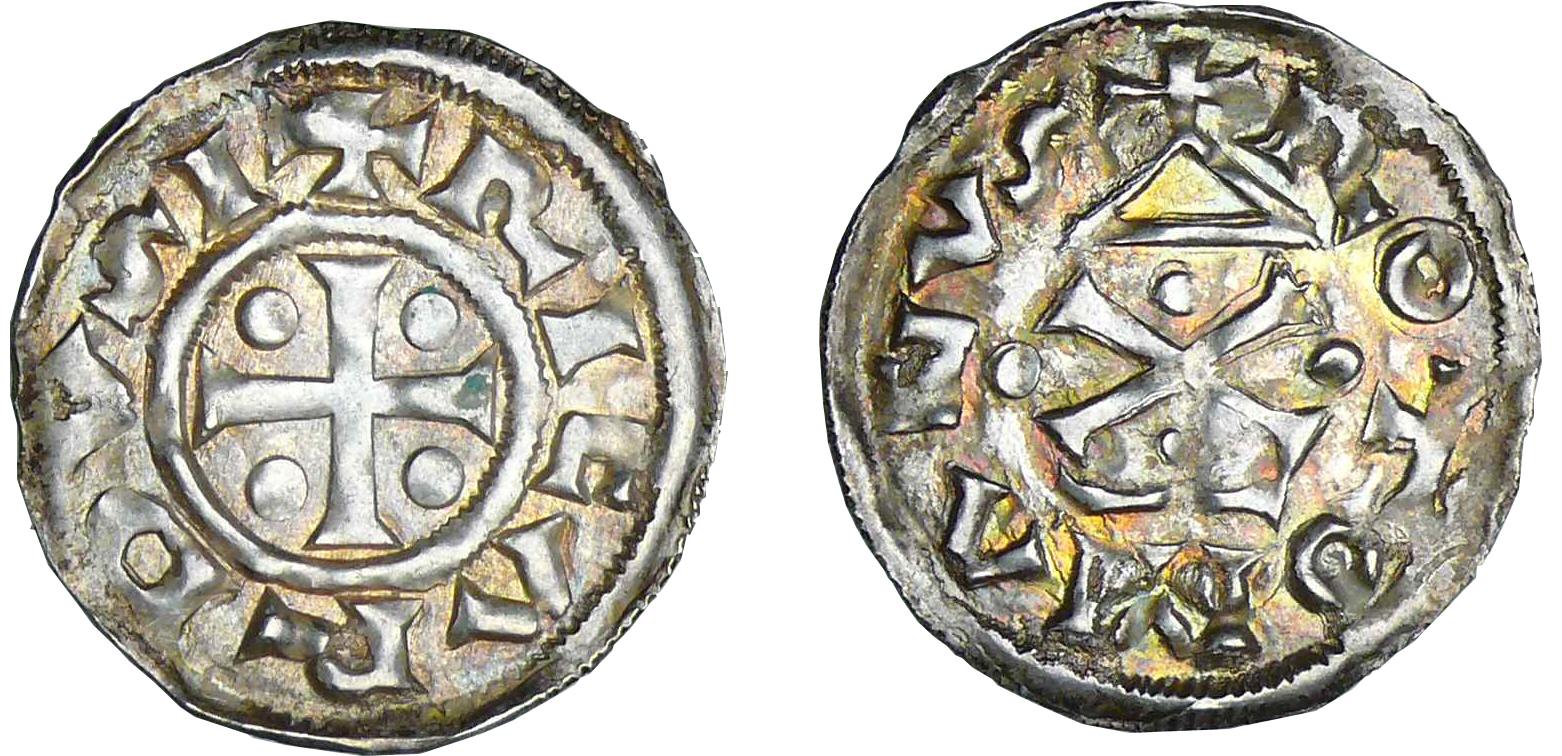 Richard 1er (960-980). A/ + RICARDVSI. Croix cantonnée de quatre besants.